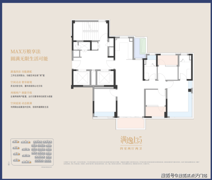建面约135㎡ 四室两厅两卫户型: