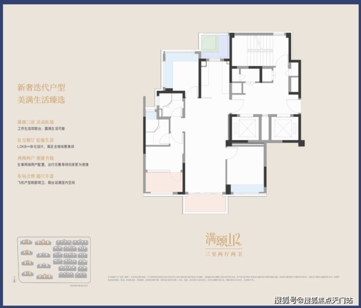 多阳台及功能空间均享有面积赠送,在保证功能完整性的同时提升 实际使用面积 ,满足三代同堂或二胎家庭的改善需求。