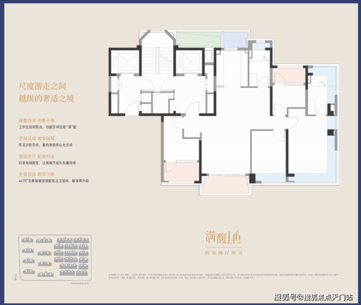 四房功能性够强,且 主卧为 270°全景舱套房 ,配备独立卫浴间,舒适度与私密性双爆表!