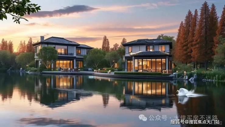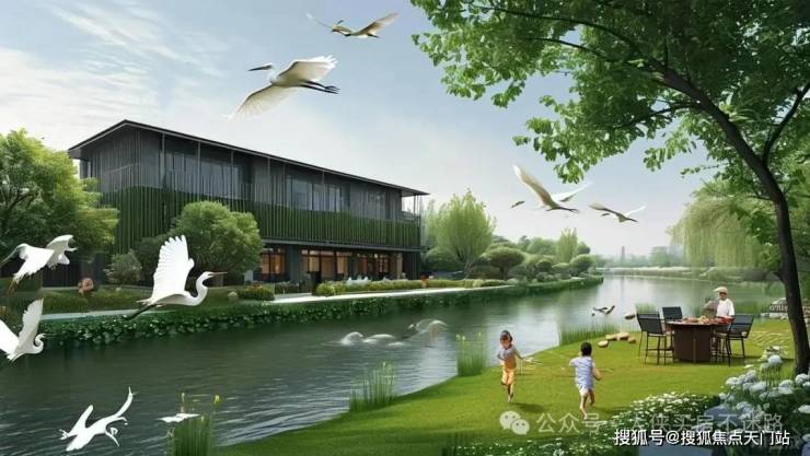 如果说交通是硬实力,那南侧约500米原生水岸+20米宽生态河道,就是项目“凡尔赛”的资本。180°河景不是噱头,清晨推窗见白鹭掠过水面,傍晚在私家庭院烧烤时,风里都带着水杉林的清新。更绝的是设计师的“立体纵享”思维:联排别墅通过跨层联动设计,让地下室也能借到庭院采光,小孩在草坪奔跑的身影,老人修剪花草的闲适,透过落地窗成了家里流动的风景画。这种“有天有地”的奢侈,在市区大平层里可复制不来。