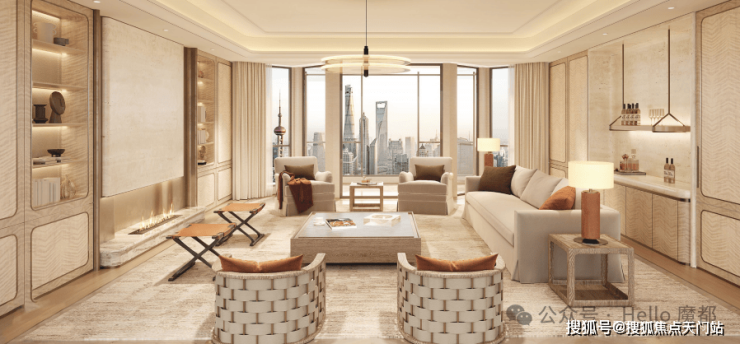 项目南侧一栋住宅户型呈金字塔造型,四间套房,超大客餐厅,充分利用南向面宽,360°采光不浪费一丝一毫江景。每个房间都有超大阳台,阳台外设置阔绰花池。南侧塔楼顶部设计了一座停机坪,这是上海首个也是目前唯一设计顶楼停机坪的住宅。北外滩将按照“最高标准、最好水平”的总体要求,打造以“世界级会客厅”和“具有全球影响力的世界级滨水区”。