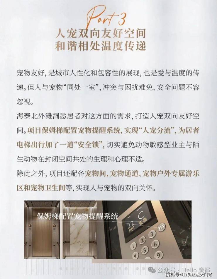 海泰北外滩注重打造美好生活,如室内干衣系统、宠物间和宠物通道,电梯宠物提示系统、宠物户外专属游乐区和宠物卫生间、郊区专属有机农场直送新鲜食材,全程冷链,全天二十四小时供应、地下空间配置私家车驾驶员和私人助理休息室、家庭酒窖与家庭储藏室、私家车驾驶员和私人助理集中健身娱乐空间、访客等候区和访客驾驶员休息室、专属快递收发室和智能收取系统、集中洗衣服务系统、集中高档衣物储藏空间、家庭影音室、专属大型车停车位等满足不同家庭需求。