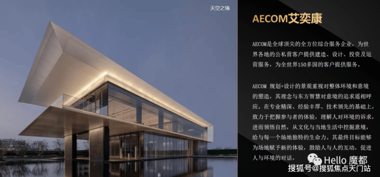 项目由上海地标建筑上海商城设计单位约翰·波特曼建筑设计事务所设计。AECOM艾奕康担任景观设计,AECOM是全球顶尖的全方位综合服务企业,为世界各地的公私营客户提供建造、设计、投资及运营服务,为全世界150多国的客户提供服务。