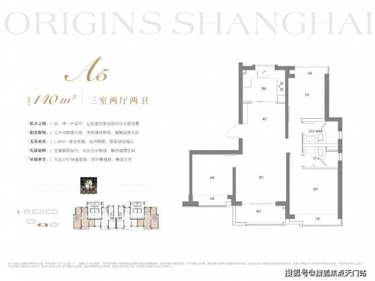 室内空间布局方正,南北通透 。厨房、餐厅、客厅、阳台相连,形成了一个开阔的活动空间;三间卧室足以放下双人床+各类柜体,宽敞舒适;两间卧室飘窗呈270度转角,视野更加开阔。