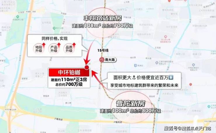 同样是地铁房,往前一站的桃浦百平三房,已经是800万级, 「中环铂樾」首开66000元/平的惊喜均价,总价约700万+, 同样是三房产品,劲省100-200万!