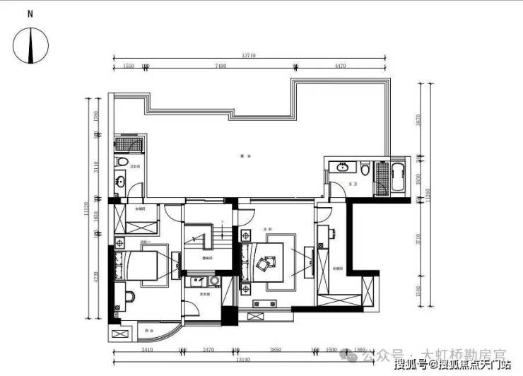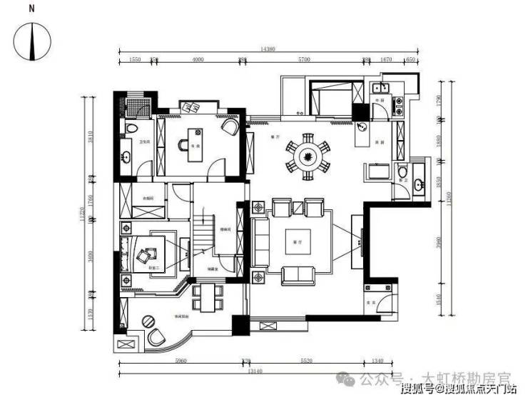 南北通透:客厅面宽5.8米,餐客一体设计,70㎡露台与室内空间无缝衔接,通风采光俱佳。