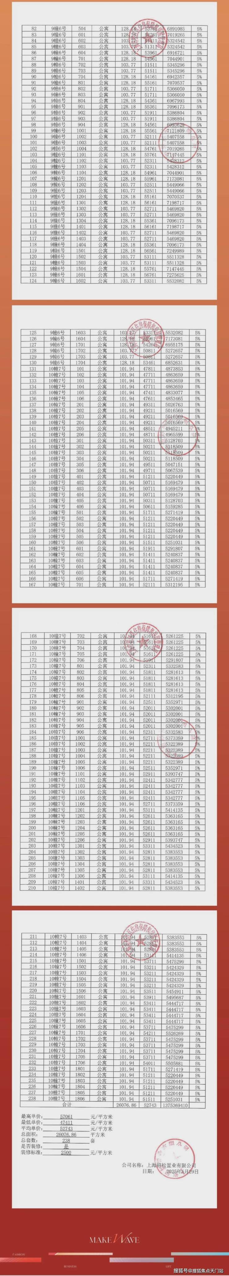 2024年1月10日,经过56路竞价,最终 招商以52.5亿摘下松江区泗泾镇SJS20005单元14-01、16-02、17-07号地块,地块位于9号线泗泾站北侧,出让面积129624.71㎡, 房地联动价51100元/㎡。