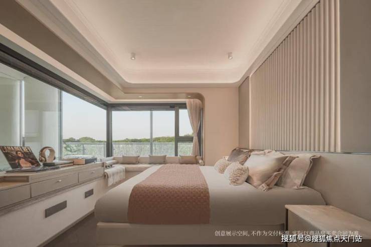 如果是边套的主卧,还会有一个约270°的转角飘窗,尺度感和实用性更上一层楼。
