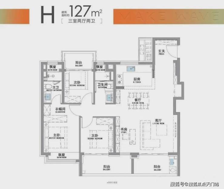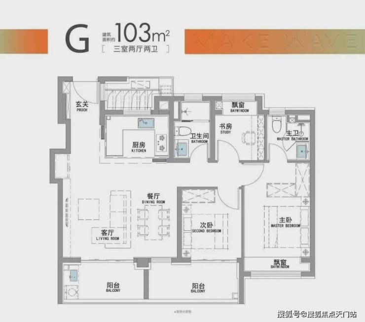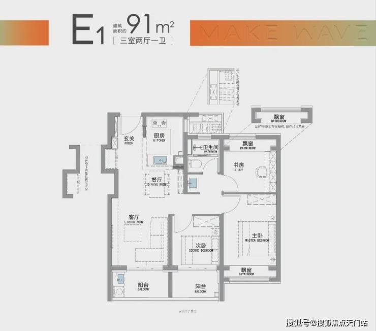 “南向双阳台+南北双飘窗”,构筑真3房户型!