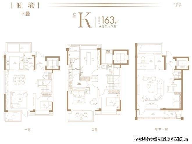 建面约142㎡下叠为例, 地上两层、地下一层阔绰空间,动静科学布局,全面考量三代同堂与二胎家庭的居住空间需求,以人性化质感空间演绎舒奢生活.