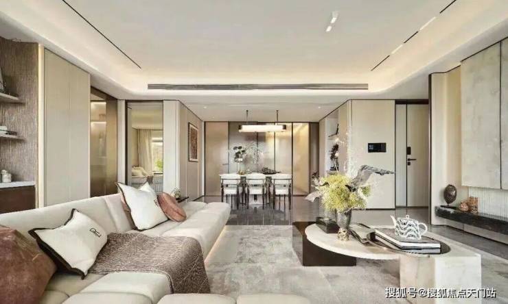 客厅可与南次卧联通,轻松变换为 约6.3米奢阔横厅 ,场景随心定义。主卧套房配备独立衣帽间、奢阔主卫,尊崇感十足。