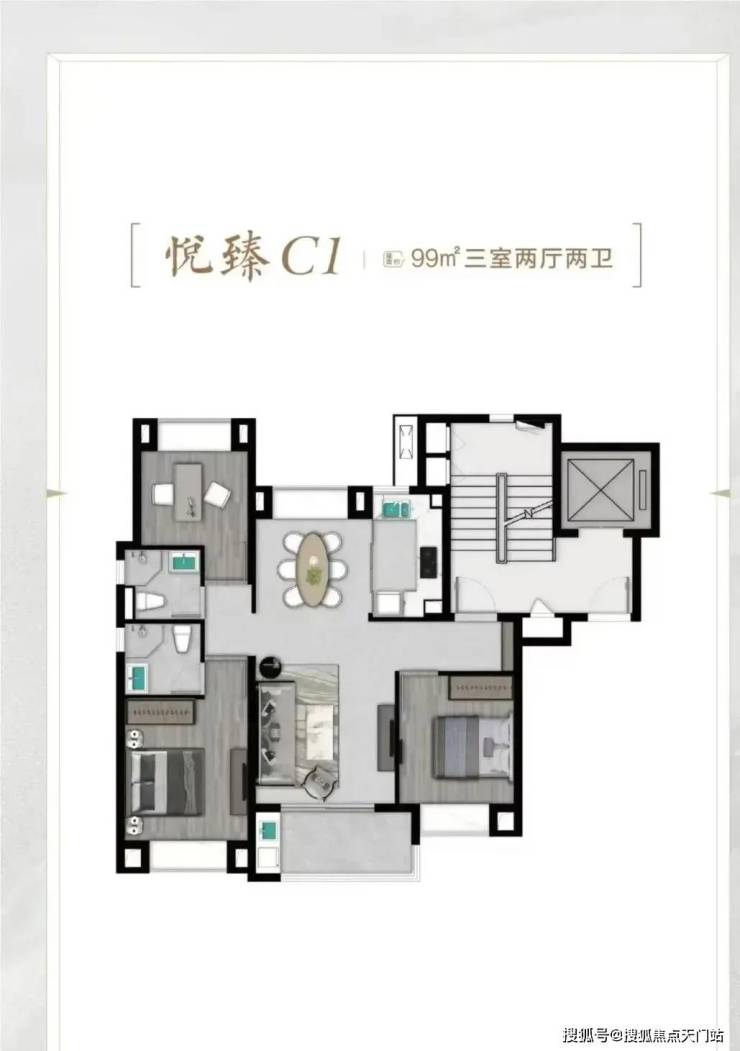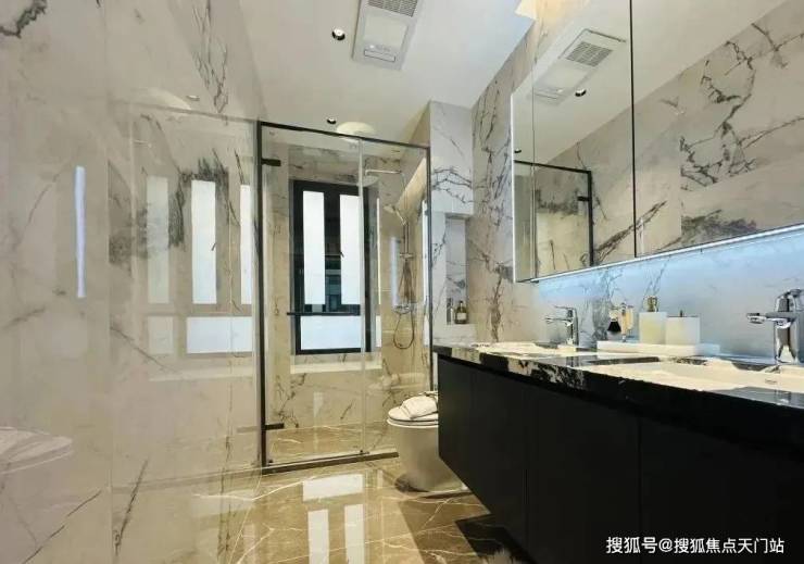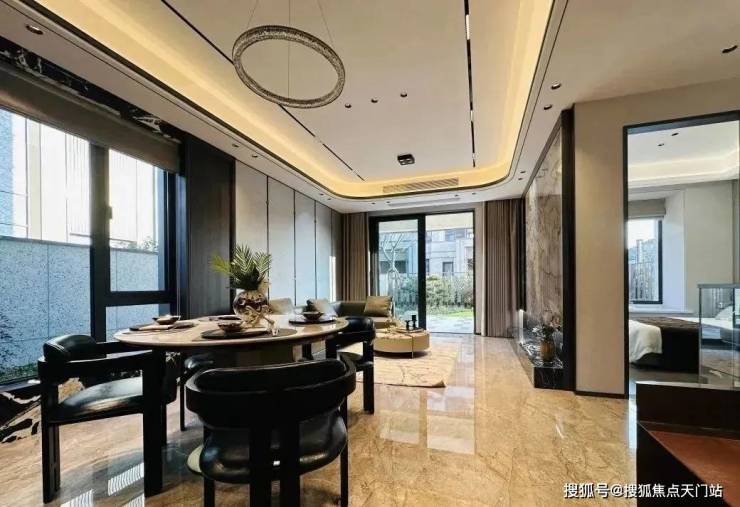项目打造新中式立面风格,别墅1-3层、洋房1-2层采用来自巴西的维多利亚白天然石材干挂,营造高级、大气的建筑气质。