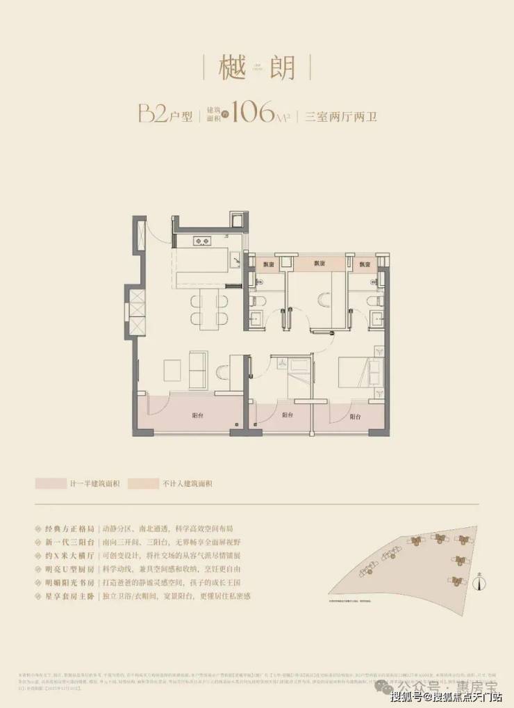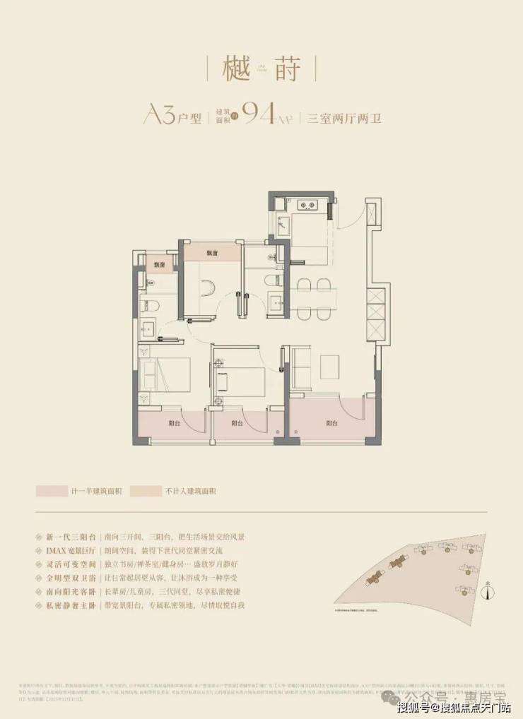 经典动静分离户型,预留分户“S”墙设计,三开间朝南+三阳台,)阳合仅计算一半建筑面积,北次卧附赠飘窗,同时飘窗两侧无墙垛,整体利用率会更高!