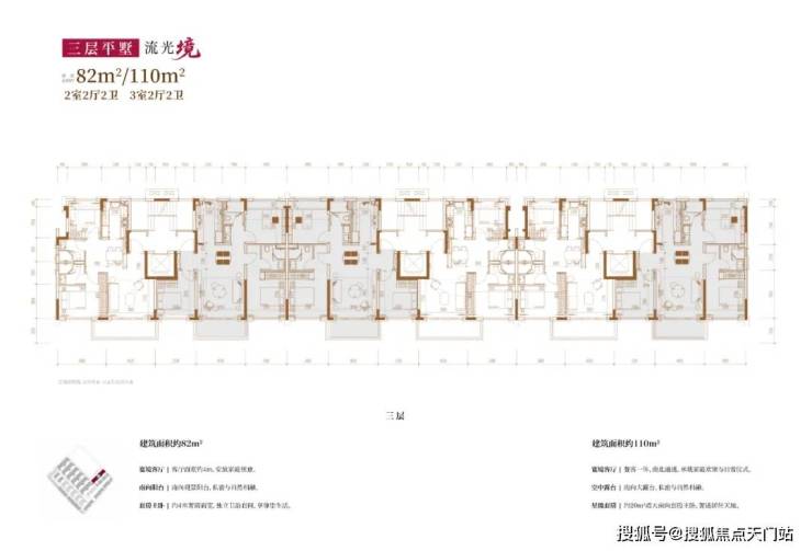 建面约82㎡2房2厅2卫/110㎡3房2厅2卫(三层上叠):
