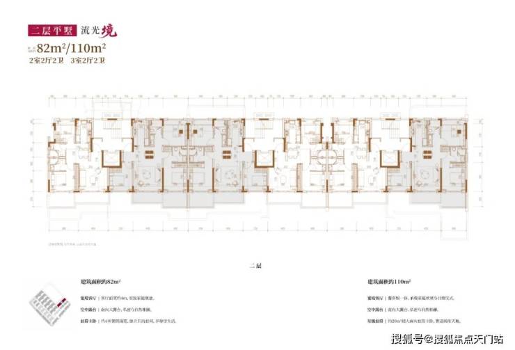 建面约82㎡2房2厅2卫/110㎡3房2厅2卫(四层上叠):