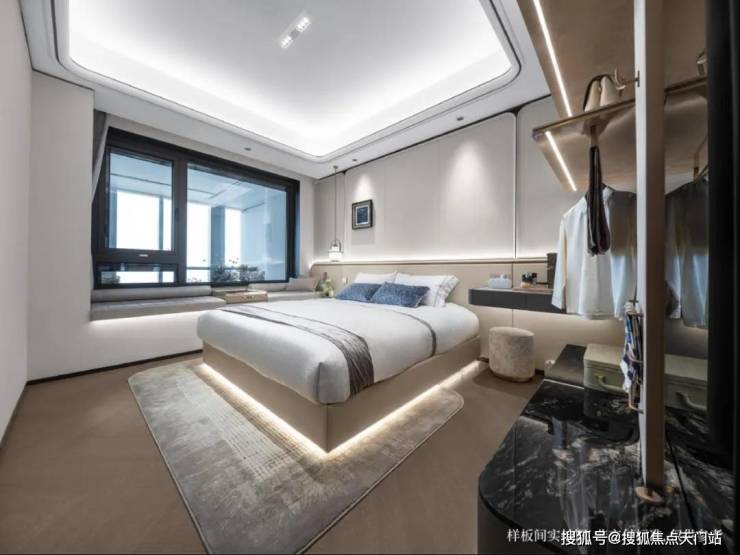 而在主卧区域,建发也将大量赠送的飘窗窗台做低,可以放置收纳,成为女士的化妆台,以及夫妻松弛畅聊的沙发卡座。