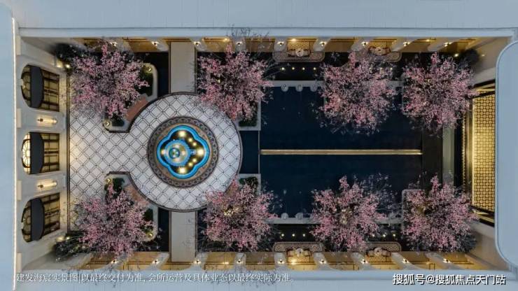 以玉兰门庭—迎归大堂—莳花荟为主轴,敬献步履生辉的归家艺旅:玉兰门庭如繁花盛绽,尊华瑞鳞水景聚运生财,双尊铜狮镇守家宅;迎归大堂流转光影艺韵,百羽栖澜艺术雕塑、芦海宸韵非遗绣作流淌摩登气韵;莳花荟中央会客厅移步异景,献映会客、休闲等雅会。