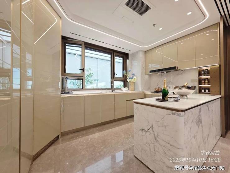 U型厨房的设计同样令人称道,整体面积约7.5㎡,台面总长约5.8米,比常规户型多出25%的操作空间,两人下厨绰绰有余,洗切烹炒盛更高效顺畅,让烹饪成为一种享受。