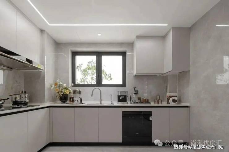 比如卫浴空间,升级镜柜,植入美妆冰箱、主卫卫洗丽等现代化配置;客厅背景墙岩板,客厅采用金属踢脚线,提升整体质感;厨房空间适配真实烹饪动线,配置直饮净水器、大单槽、360°抽拉龙头等。油烟机采用