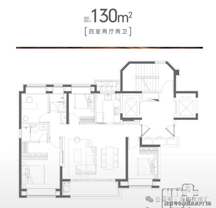建面约130㎡的四房两厅两卫