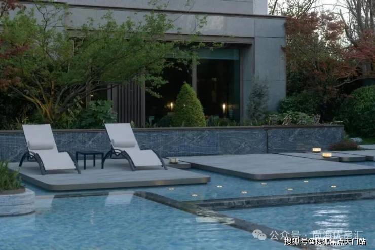 与森氧会客厅相接的是一处精心打造的度假戏水池,它不仅是清凉嬉戏的天堂,更是悠然自得的休闲圣地。下沉式的卡座巧妙地被清澈碧波轻轻环绕,为访客提供了一方私密而舒适的休憩空间。同时配备高端躺椅、阳伞增加度假氛围。池畔一侧,一抹别致的壁炉装饰更是点睛之笔,它不仅是视觉上的焦点,更象征着温暖与团聚。