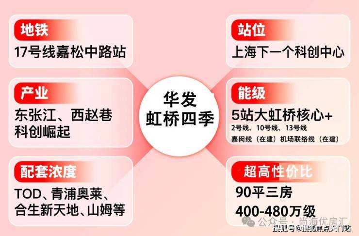 它的优势太过于明显。同价位段400-500万级的新房中,宝山杨行、松江洞泾、浦东航头等板块,除了宜居,没有强势的产业加持;而同大虹桥板块中,华漕新房700万级,江桥、徐泾的新房都是600万级,且离地铁距离较远。唯有华发·虹桥四季,能够满足到置业者“既要又要”的美好憧憬!