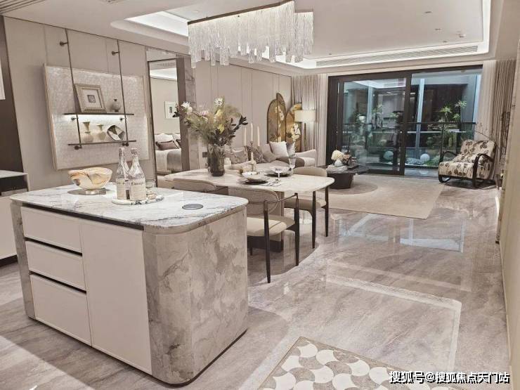 进门可以看到经典的S墙设计,L型厨房操作台面,也是暗藏不少细节——玻璃移门采用 完美系列夹丝玻璃+金属造型边框,顶部配置 线性凉霸+LED嵌入式回形灯带+筒灯,灶台后侧采用大面积岩板铺设,方便清洁的同时显得厨房更加大气。厨电配置了 德国厨房海上·清和玺售楼处电话:400-1182-105【预约☎】√√顶奢品牌博世(或同等档次) 四件套抽烟机+燃气灶+洗碗机,带末端净水器,弗兰卡(或同等档次) 大单槽+可抽拉龙头,冰箱也是交付的!柜门白色烤漆面板,抽屉分区也都是帮大家细致划分,如多功能调味拉篮+谷物抽+碗碟拉篮等。岛台上配置可升降插座,铝合金抽屉,石材背景板的金属开放格实用性很强。电视背景墙采用卡慕白的石材+皮革造型,弧形吊顶,相当讲究,连空调出风口的形状都打造为海上·清和玺logo山茶花的形状~~ 三大件为大金(或同等档次) 中央空调和地暖,新风系统为百朗(或同等档次),南向阔景阳台,采光视野一级棒!