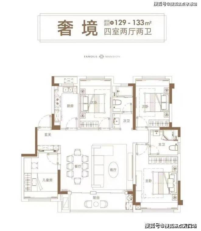 建面约129㎡四房,则是改善置业的优选。