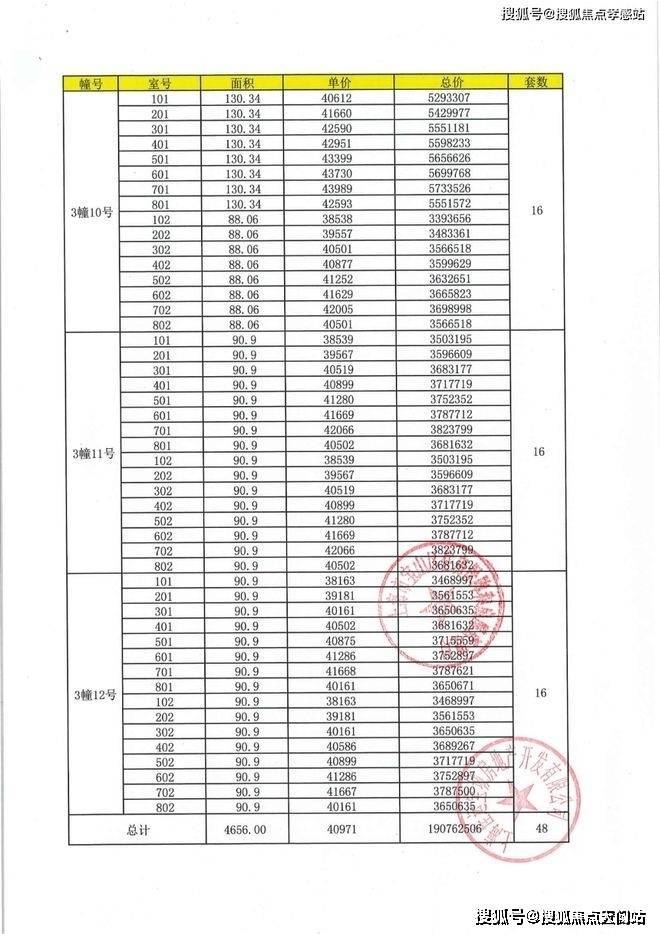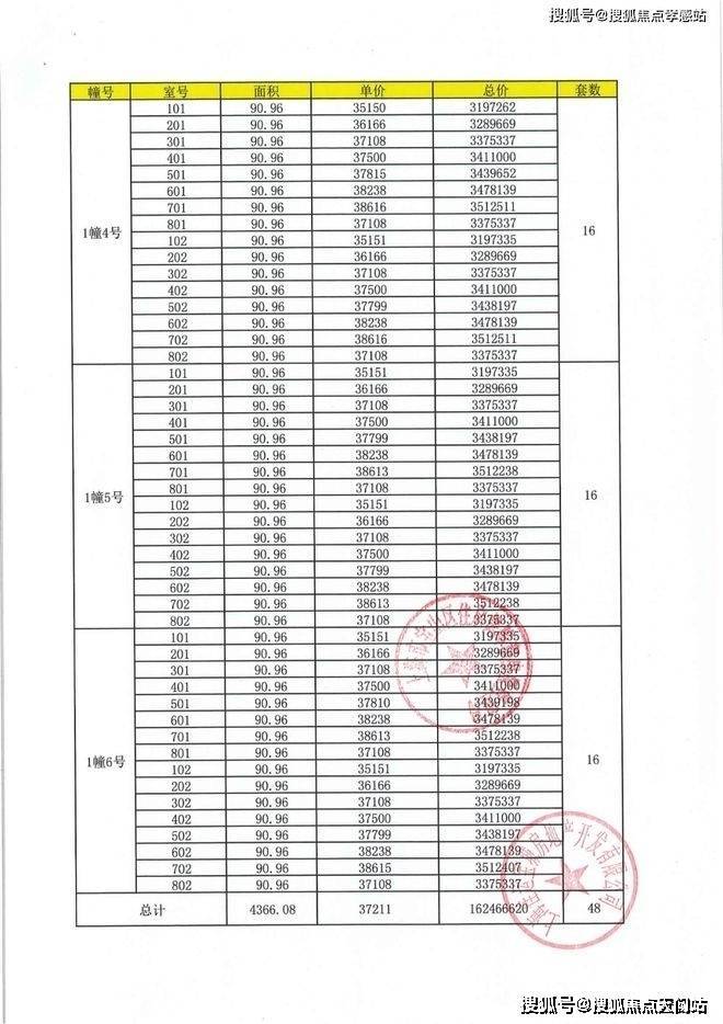 一房一价表: