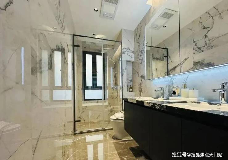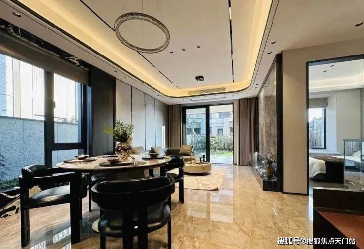 项目打造新中式立面风格,别墅1-3层、洋房1-2层采用来自巴西的维多利亚白天然石材干挂,营造高级、大气的建筑气质。