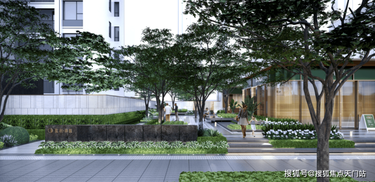 在空间上,项目让出城市街角空间形成街角绿化社区名片, 约75米超长尺度城市街区生活形象,打造城市温情归家界面。同时利用项目 自持的约500㎡商业配套,为业主提供家门口的休闲与便捷,也能触发更多的社交可能。