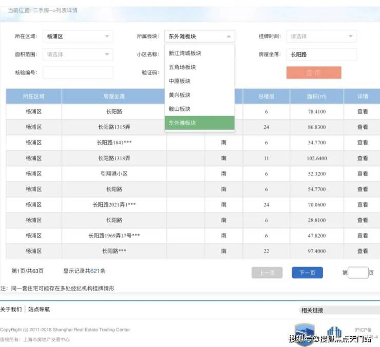▲上海市房地产交易中心杨浦区东外滩板块截图▲