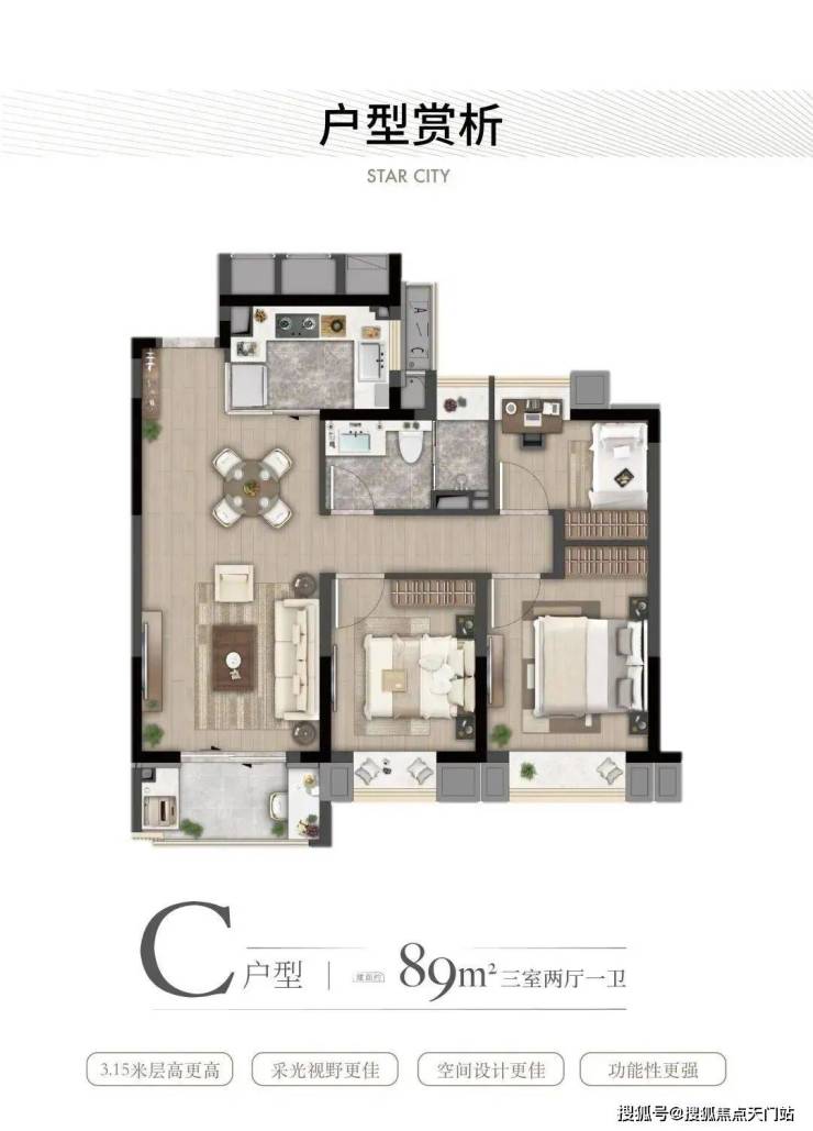 三期户型较二期更丰富,目前剩余建面约72-89㎡2房、3房,满足全龄段置业需求。