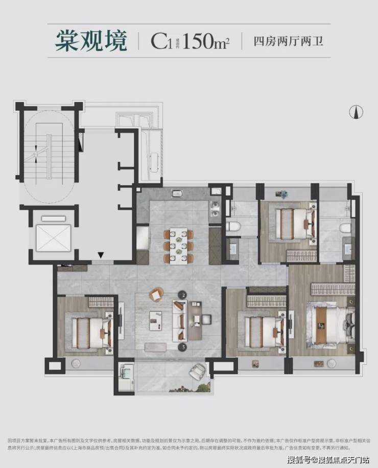 如果家庭有二孩或者三代同堂需要的,那建面约150㎡的四房大平层一定要优先加入您的“购物车”,标准的“大面宽短进深”的黄金户型格局,直接让人竖起大拇指: