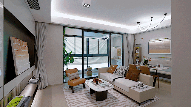 客餐厅相连的大横厅,匹配同尺度超大面宽阳台,室内阳光满溢。