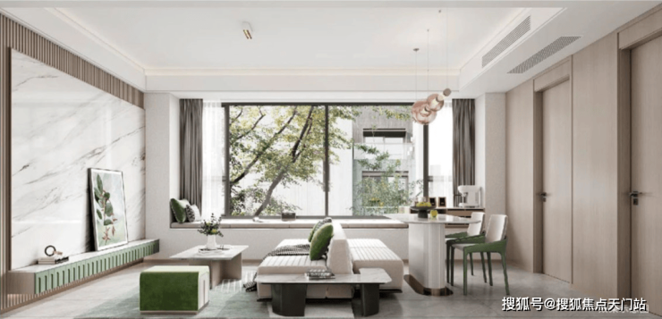 【归家礼序】以一轴一带多境的格局,打造迎宾客厅、仪式水景、景观连廊、艺术水苑、森氧绿境、精装大堂六重归家礼序。