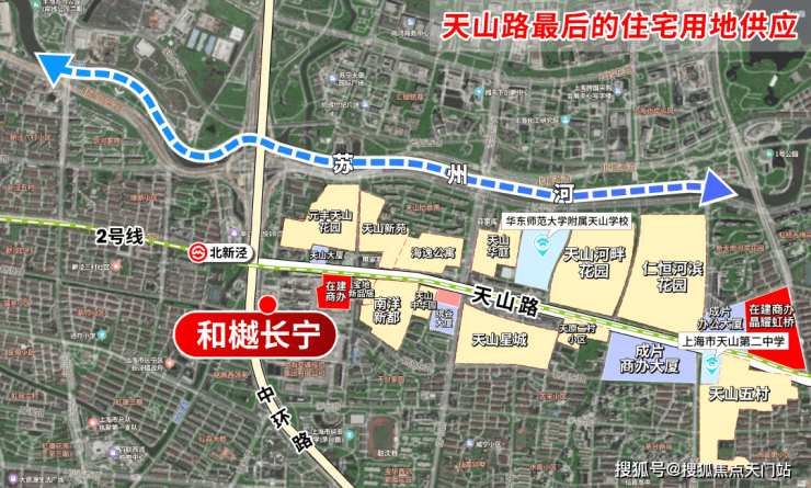 从卫星图看,和樾长宁俨然是天山路两旁 最后的住宅用地供应!买进即封顶的绝版资产!