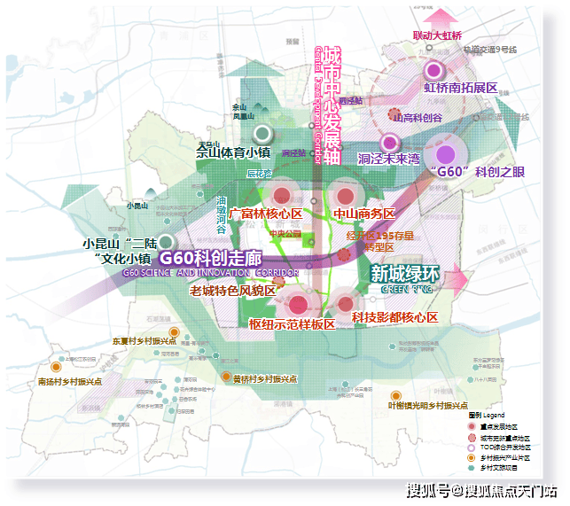 一个区级商业中心节点:印象城MEGA(二期在建)与广富林遗址特色商业融合;