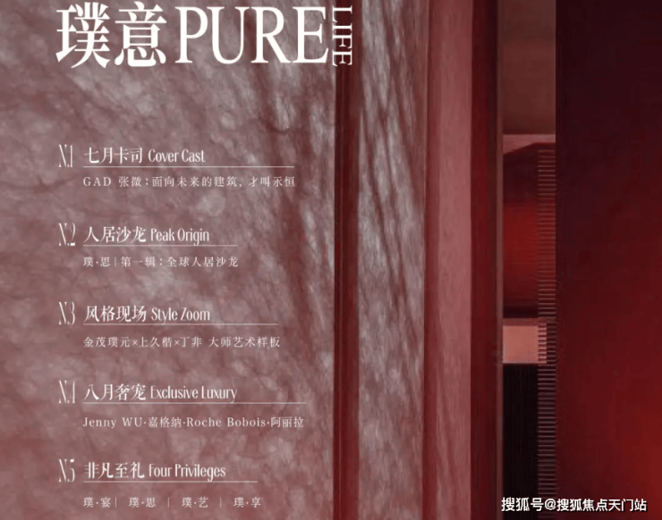 金茂·璞元为未来业主量身定制璞意荟PURE LIFE四大私属尊享权益,涵盖自然、艺术、健康、品味的全维度雅致享受,通过璞艺、璞宴、璞思、璞享为载体,集萃全球高定跨界资源,为业主带去返璞归真的东方美学生活体验