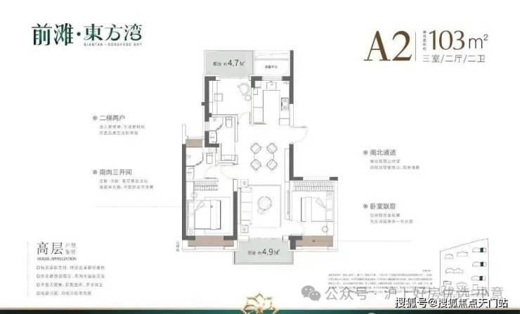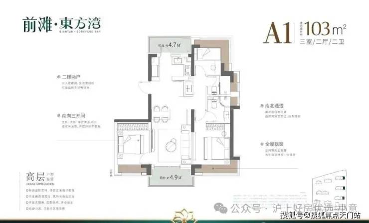 这3个户型三开间朝南、室内 “ 朝南2飘窗+1阳台 ” 、再加上 “2卫”、“动静分离” 的设计,不管是采光、视野、通风、私密性,还是实用性都十分出色。