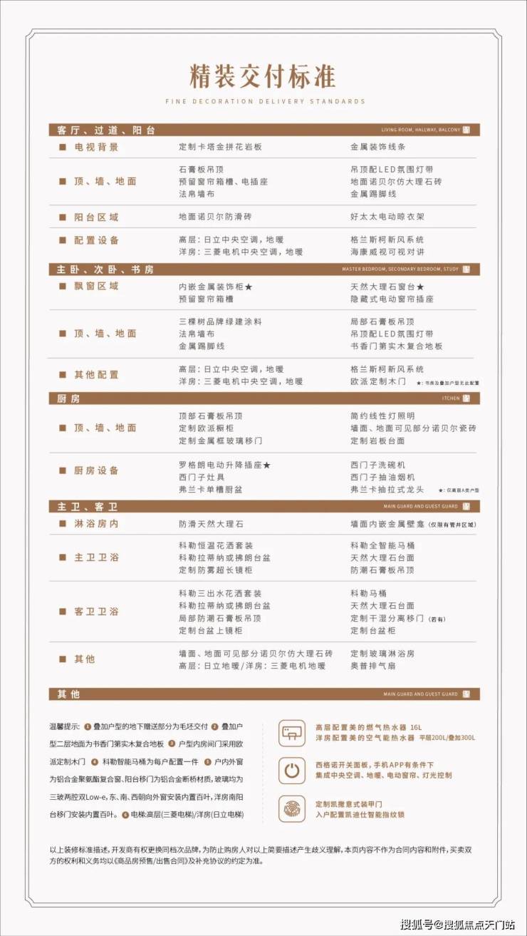 项目装修标准也是诚意满满, 中央空调、地暖、新风系统 “三大件”配齐,厨房、卫浴也有不少细节交付标准。