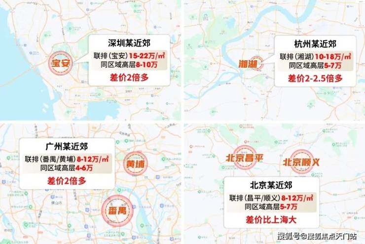再看国内其它核心城市,相似地段的低密产品溢价早已拉开差距: