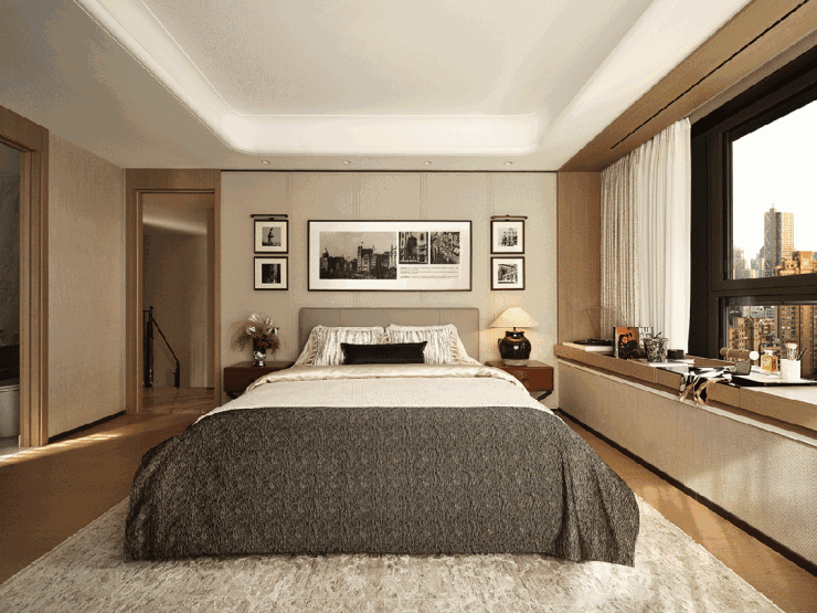 主卧采用套房式设计,配置有270°全景飘窗+卫生间,业主可以在清晨迎接第一缕阳光,或在夜晚观赏满天星斗,享受宁静的私人时光。