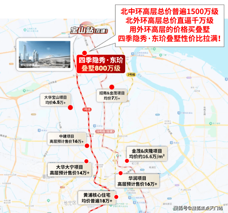再次,经过几轮土拍,北上海价值体系已发生翻天覆地的变化,中环高层总价普遍1500万级起步,外环高层总价直逼千万级。