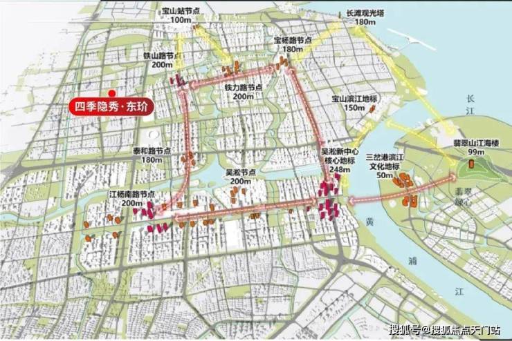 据了解,四季隐秀·东玠东侧的铁山路站未来将作为TOD综合体开发,计划建设200米超高层地标级建筑群,未来规划非常值得期待!(信息来源:《大吴淞地区专项规划》)