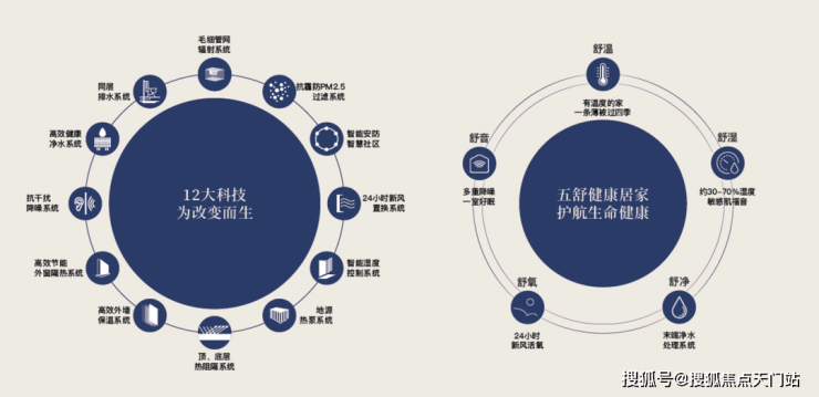 金茂引领行业的“绿色健康科技住宅”基因必将在此延续和升级。从温度、湿度、空气、水质、光照到噪音控制,一套完整的五舒十二大科技系统将是标配。