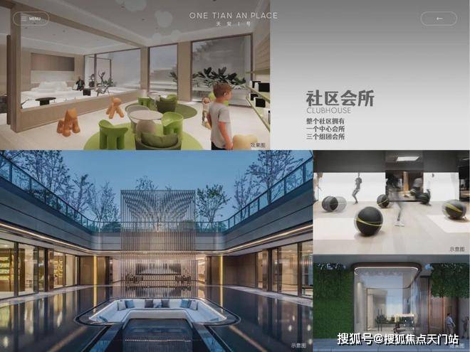 除了C区组团会以及另外两个组团会所,天安1号更在B组中,有一个 约5000m²下沉式中央会所 ,涵盖泳池、图书馆等社交功能场所,从能级与配套来看远超过当下。