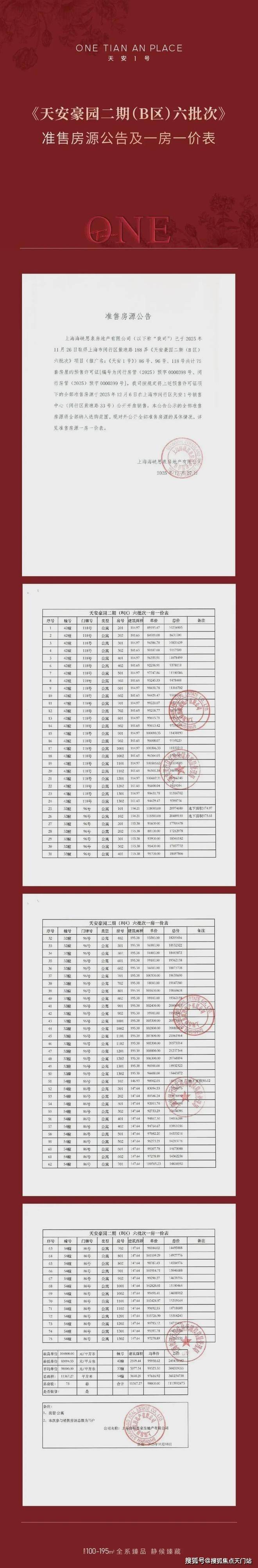 项目名称:天安 1 号备案名称:天安豪园二期开发公司:上海海峡思泉房地产有限公司(天安中国旗下)项目备案地址:上海市闵行区紫琅路 188 弄 1-74 号(售楼处接待地址:漕宝路 1717 号)预售许可证号:闵行房管 (2024) 预字 0000128 号(B 区)、闵行房管 (2024) 预字 0000223 号(C 区)、闵行房管 (2024) 预字 0000328 号(本批次)、闵行房管 (2025) 预字 0000399 号(六批次)