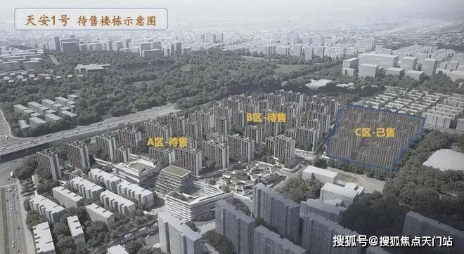 根据天安1号的公布方案来看, 将分为A、B、C三个部分,共建设48幢,最高13层的住宅楼,整体容积率为1.94,建筑密度为30%、绿地率35%。