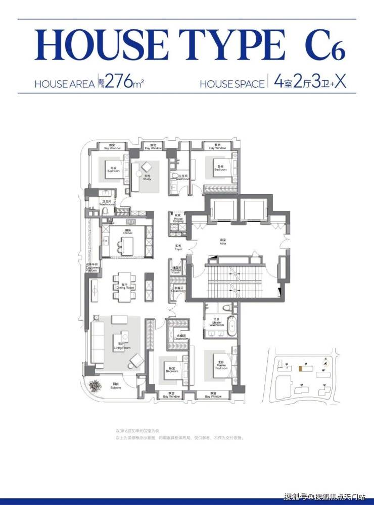 此外,客餐厅一体化、约 270° 弧形观景阳台配全卧飘窗皆为标配。